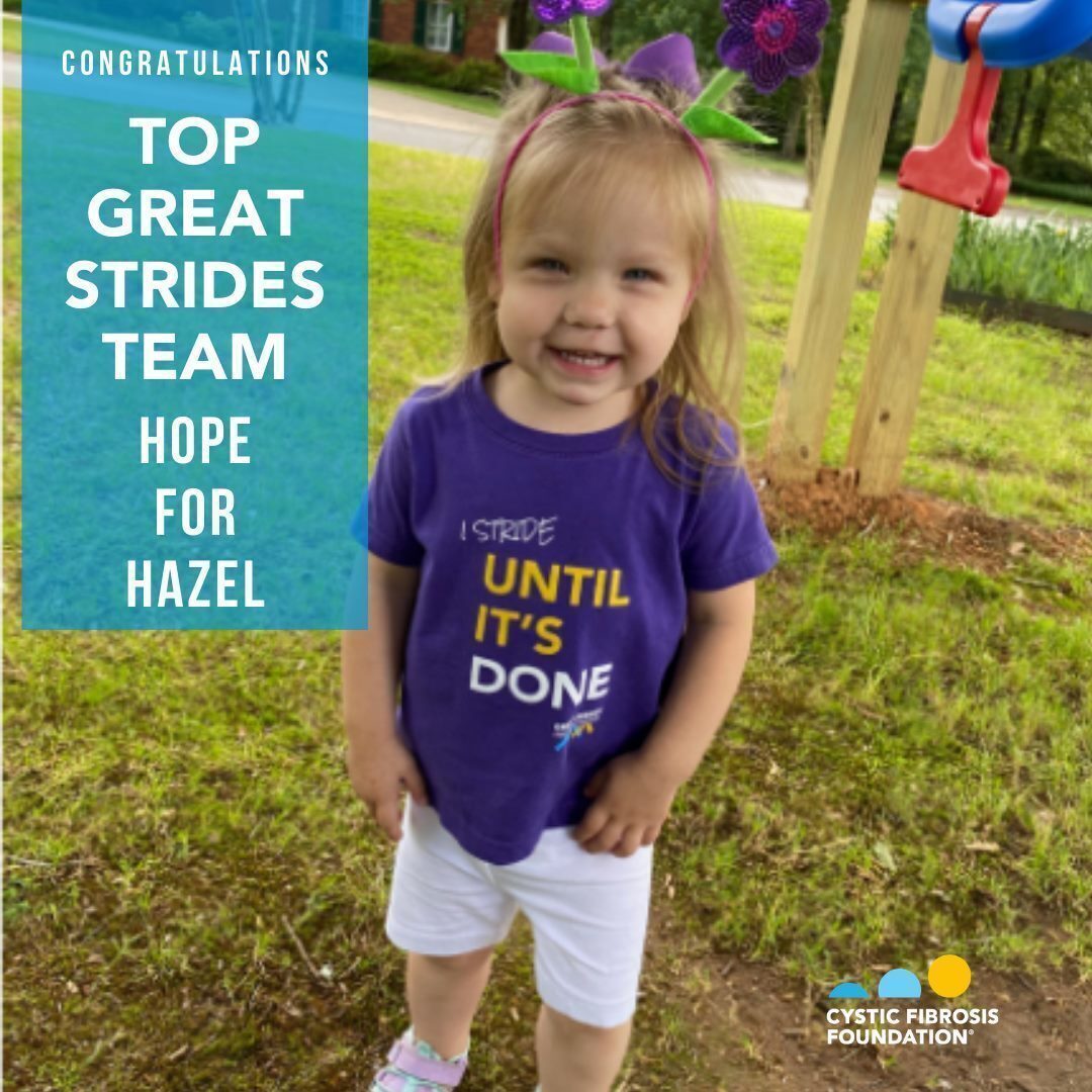 Hazel was born in January 2018 and was diagnosed with cystic fibrosis when she was just 3 weeks old. It is a rare genetic disease that causes excess mucus production in the body, affecting the lungs, pancreas, and other organs. It is a progressive, life-shortening disease which creates an increased risk for lung infections and other illnesses. Hazel has 30 minutes of breathing treatments 3-4 times daily and requires medication each time she eats. Currently there is no cure for CF, but we are working together with people all over the country to raise money for the Cystic Fibrosis Foundation to find a cure for Hazel and all those impacted by this disease.